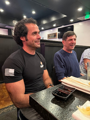 This was a fun night that Grandma decided to include us in. This guy cracked me up. Funny, entertaining, a great cook..made it look so easy and fun. I was lame and mostly had sushi but YUM.
